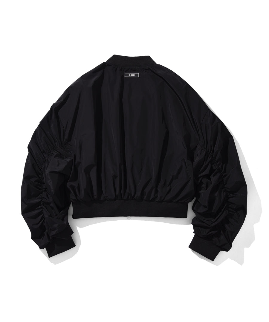 ・EL REIGN(エルレイン) 2025 FALL&WINTER COLLECTION 新作 ▪️袖にシャーリング技法を使用したライトジャケット。 ▪️袖にボリュームがあり、ボンバージャケットのようなシルエット。 ▪️ 短丈でリブの強度を強化。 |