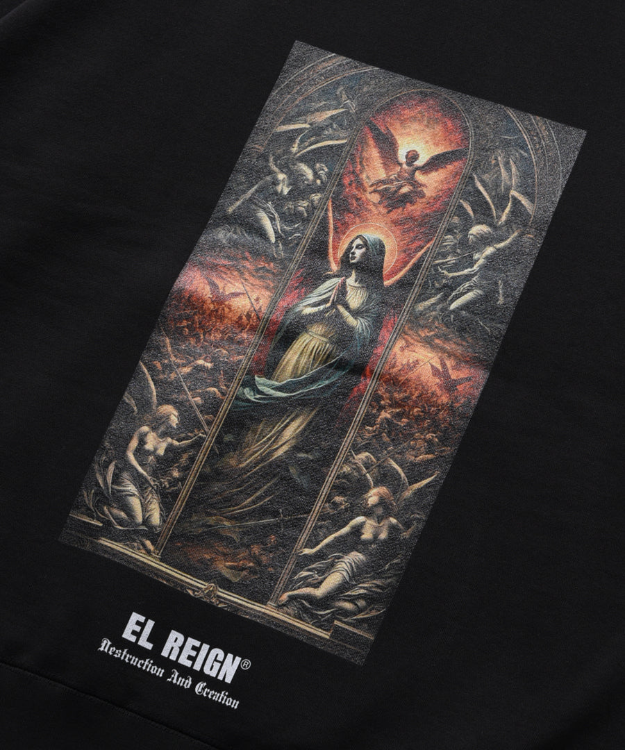 | ▪️ "光がある以上影がある。偽善に満ちた世の中で自覚し祈るマリア"をグラフィックで表現。 ▪️ 12.5ozの裏起毛 HOODIE。 |